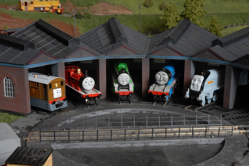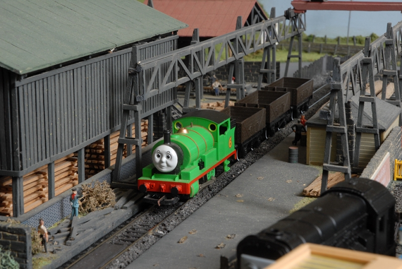 Star attraction is locomotive number 45 with the name “Wee Jimmy”. He dresses the part, with Wee Jimmy orange wig and tartan bonnet. He lives with his friends, some of whom are more famous than himself, in the roundhouse at Auchenshuggle and is regularly called upon to haul the trains from the main line station up the branchline to the quaint little station at Jimmy’s End. There his driver and mate enjoy a cuppa in the station café. Some of Wee Jimmy’s friends are smaller and less glamorous. They are put to use in the quarry, on local goods trains and in the beautifully crafted timber yard.