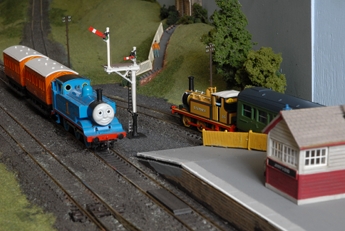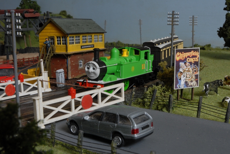 The idea for the layout originated at the club’s own show in Rutherglen Town Hall. The well known layout, Crawford Bridge was on show and for five minutes every hour the regular stock was replaced by Thomas characters. The delight on the childrens’ faces at seeing the well known characters in a real railway situation, convinced the club that a layout designed for children was the best way to promote interest in the hobby by the young generation.